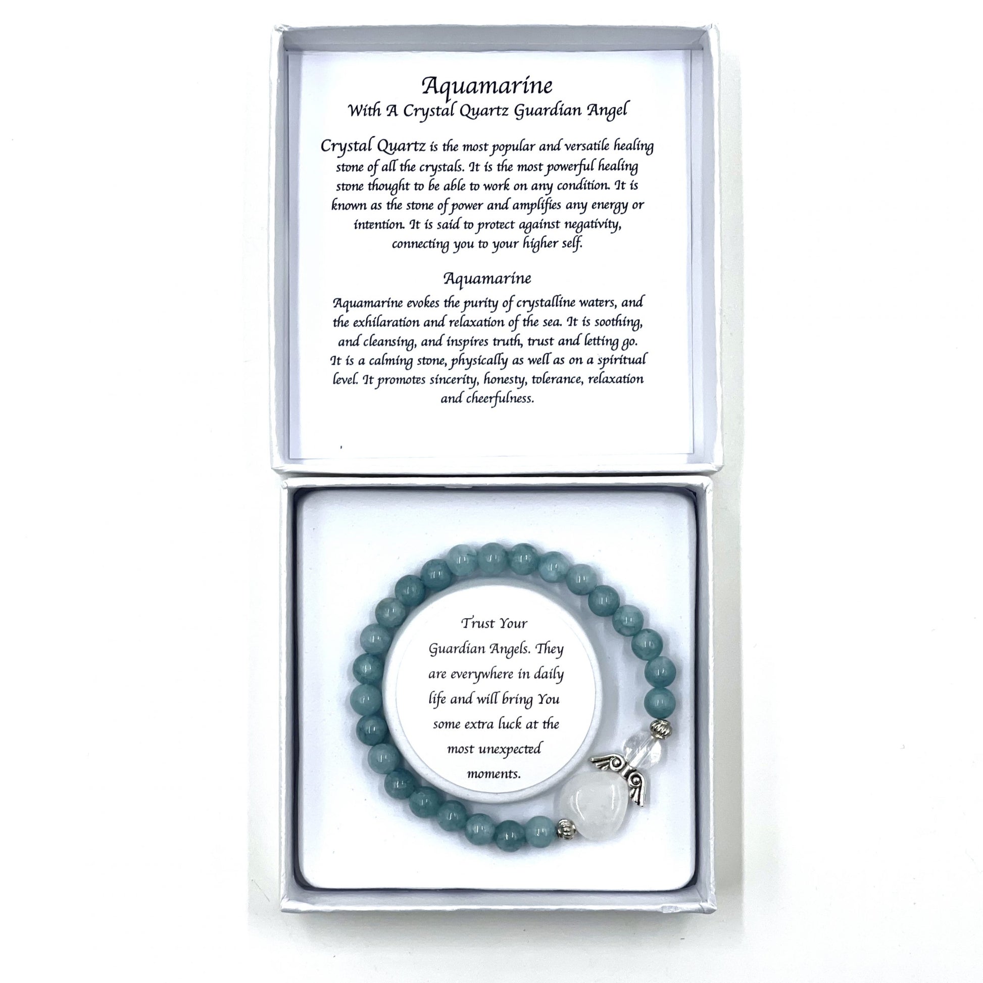 Aquamarine Crystal Heart Guardian Angel Bracelet