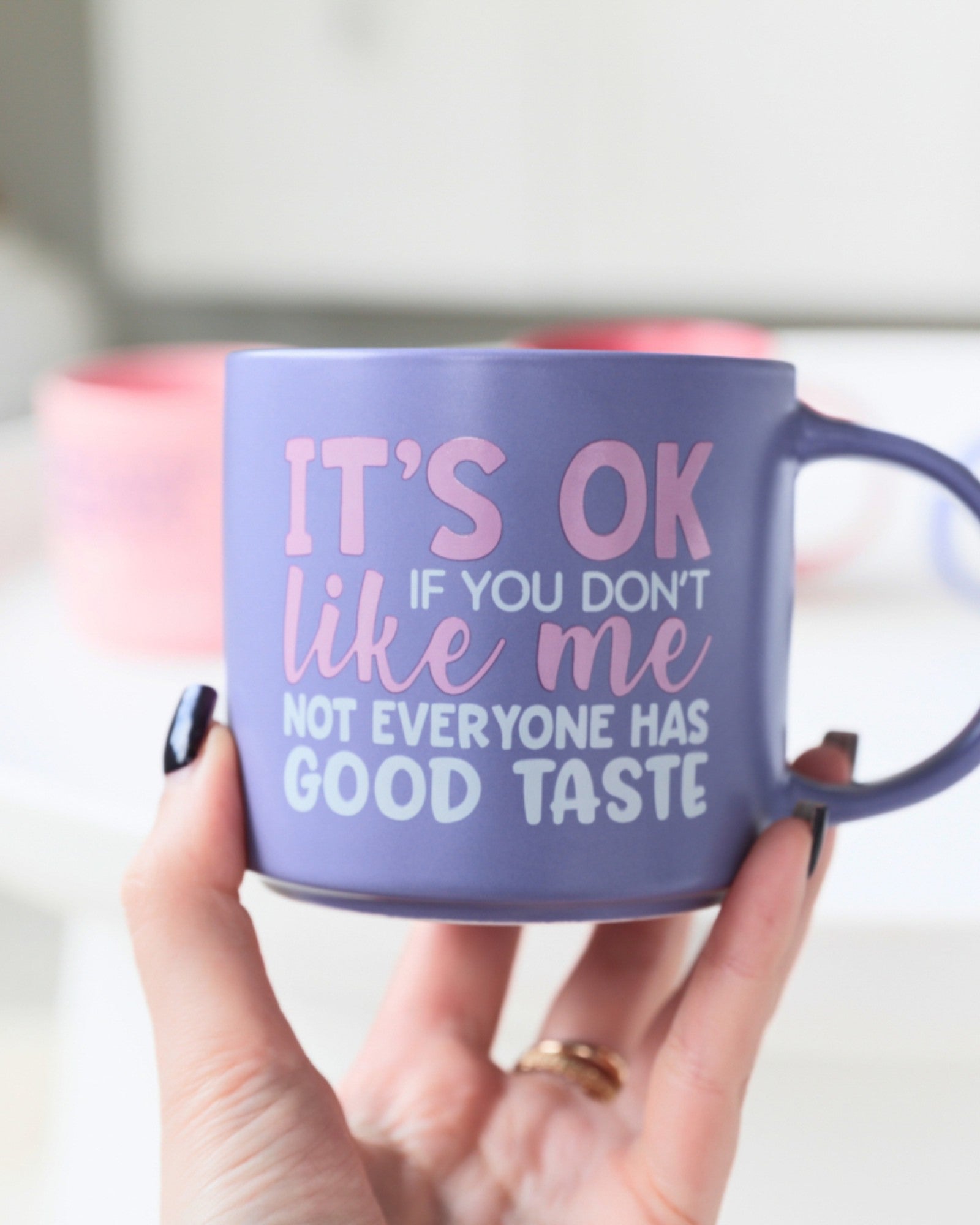 - Details: Ceramic mug with cheeky emotive saying. 435ml capacity. Microwave and dishwasher safe.