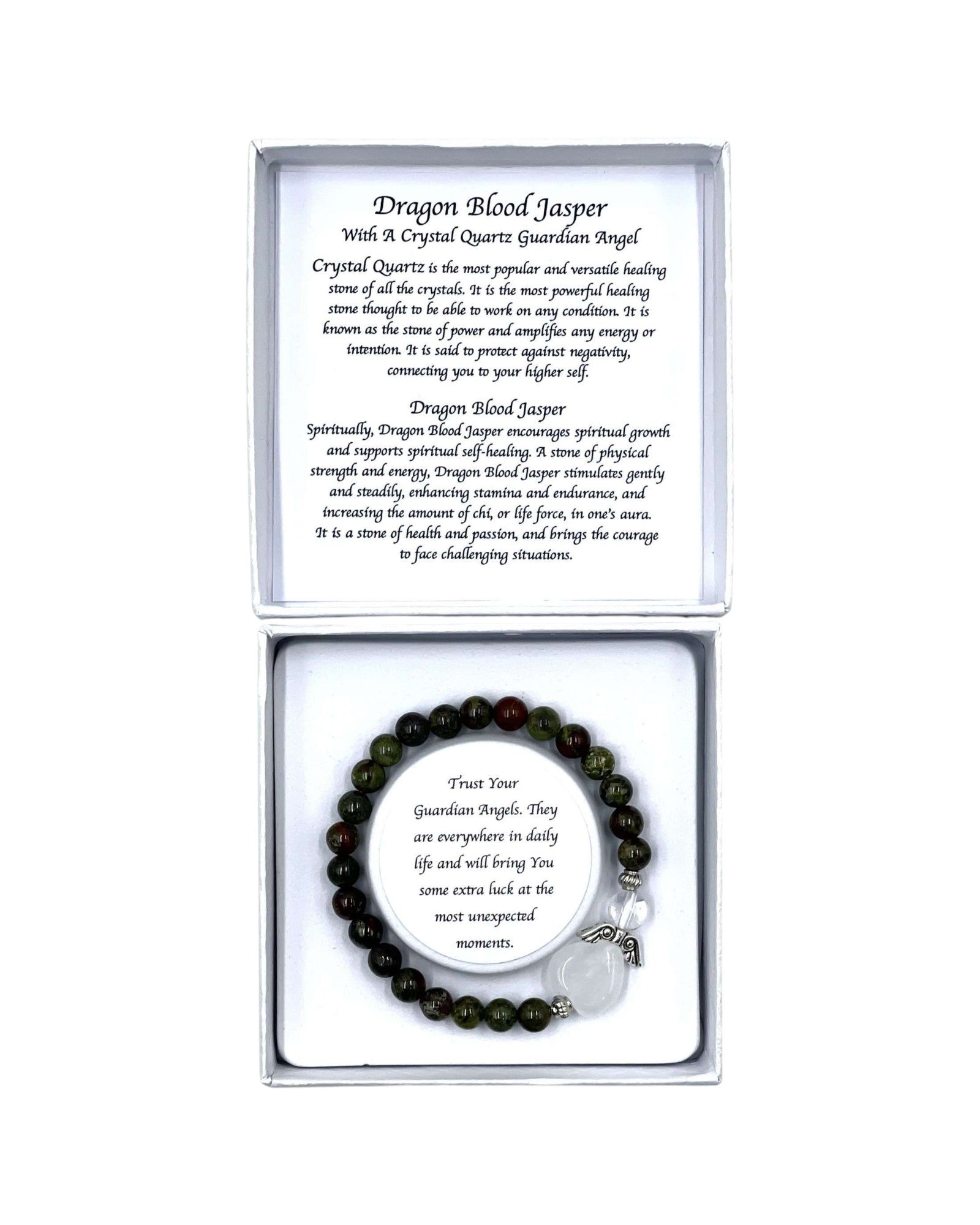 Dragon Blood Jasper Crystal Heart Guardian Angel Bracelet