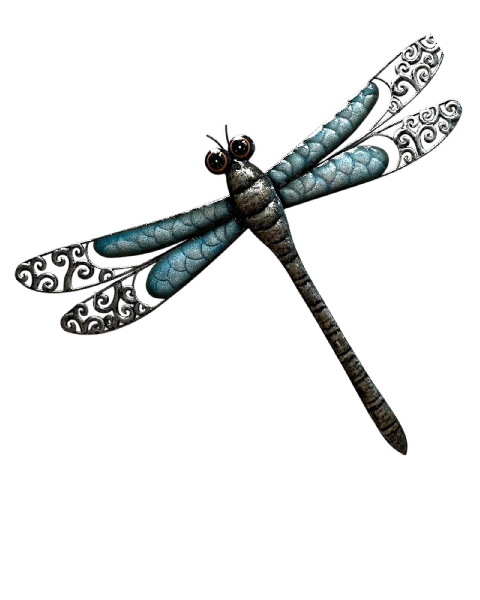 Bring ethereal elegance to your walls with this captivating blue dragonfly metal art. Spanning 47x37cm, this stunning sculpture honours the delicate poise and shimmering allure of these winged wonders. Available in blue or pink, you can choose the shade that speaks to your style. Perfect for nature lovers and art enthusiasts alike, this weather-resistant piece transforms any space—indoors or out—into a gallery of natural beauty and whimsy.