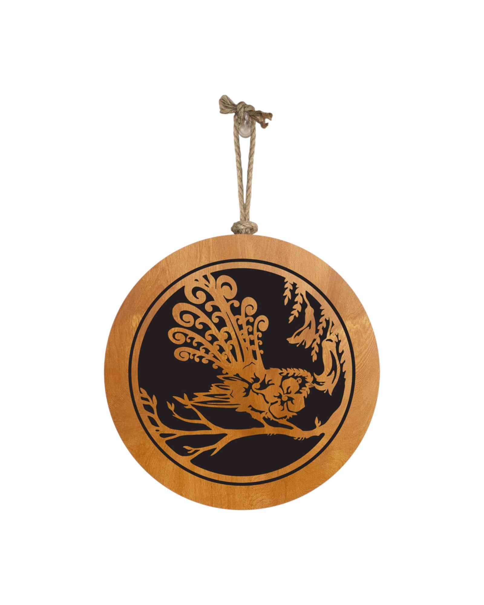 Sophie Blokker's Fantail Birch Cut Out features a striking design mounted on a black backing board, measuring 30 x 30 x 8 cm, ready to hang and make a bold statement wherever displayed.