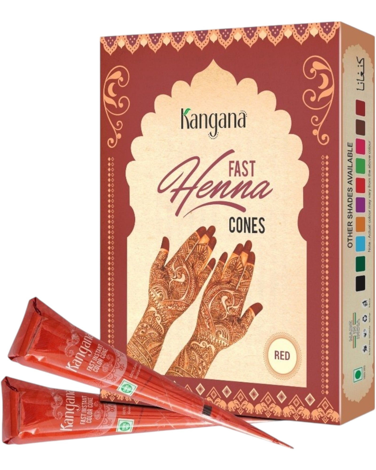 Get party-ready in no time with Kangana Fast Instant Red Henna Cones! Perfect for decorating your hands and legs, these cones deliver stunning designs in just 20 to 30 minutes. Each cone contains approximately 25 grams of vibrant black henna for quick, beautiful results.