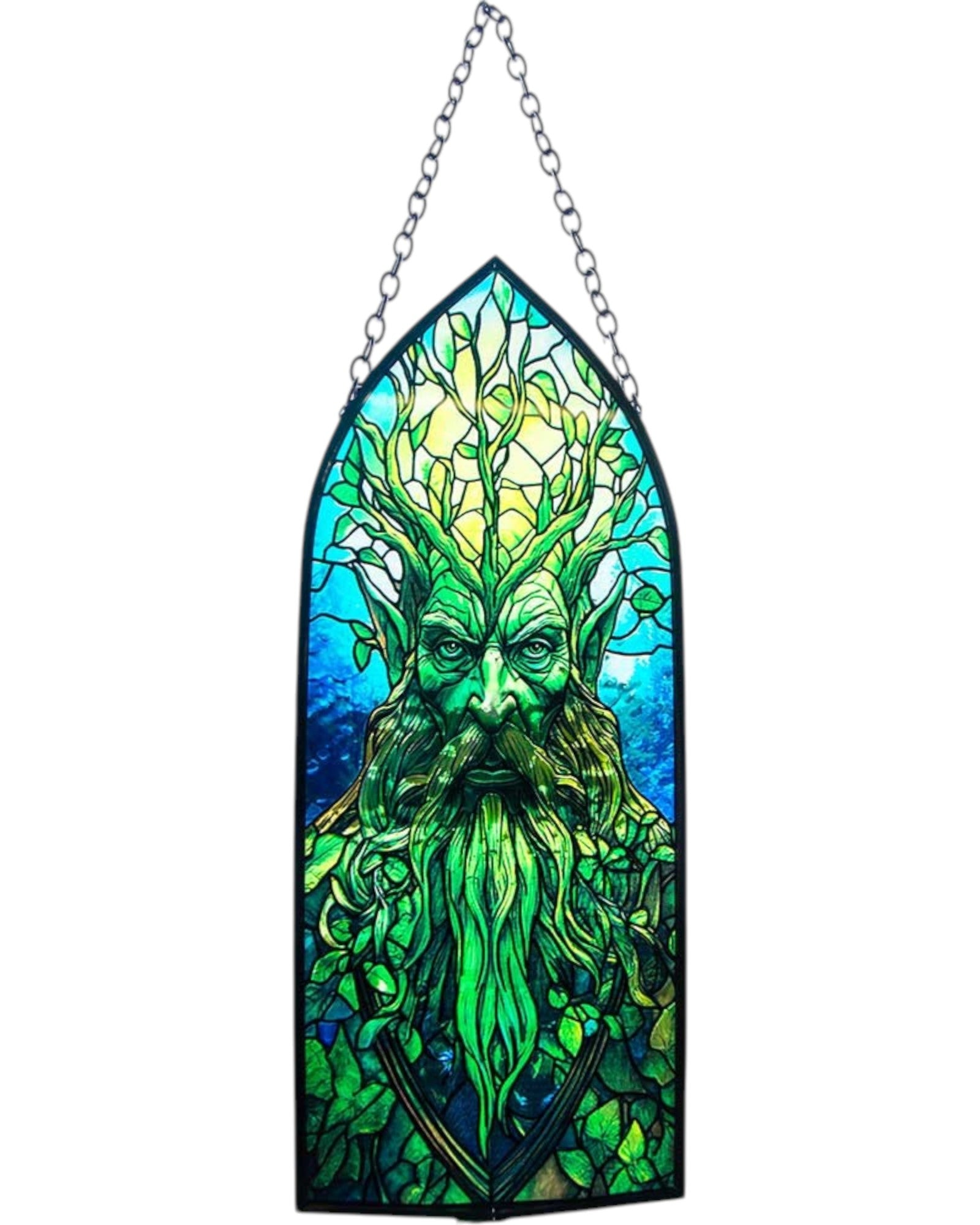 This captivating suncatcher features the Green Man, a symbol of renewal, insight, and the deep connection between humanity and nature. With his wooden beard and radiant presence, he embodies wisdom and the life force of the earth. Perfect for those who appreciate nature-inspired symbolism, this piece brings a sense of grounding, growth, and spiritual illumination to your space.