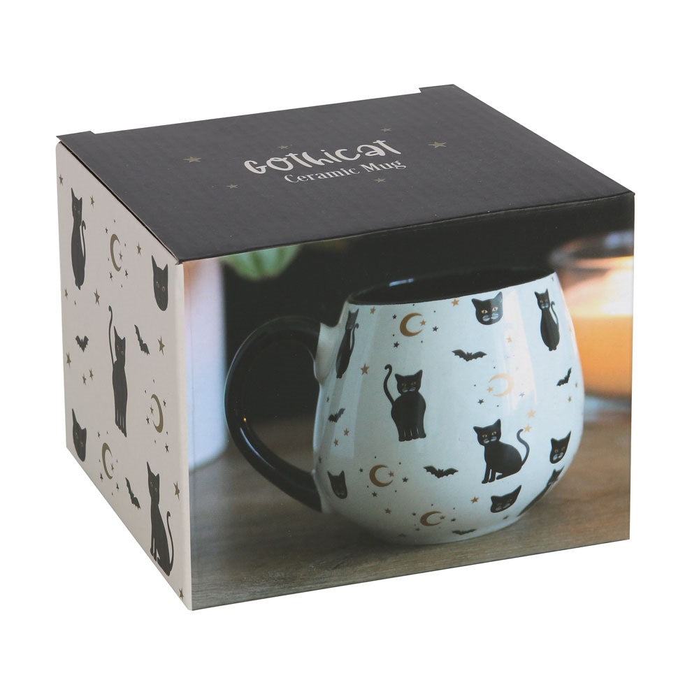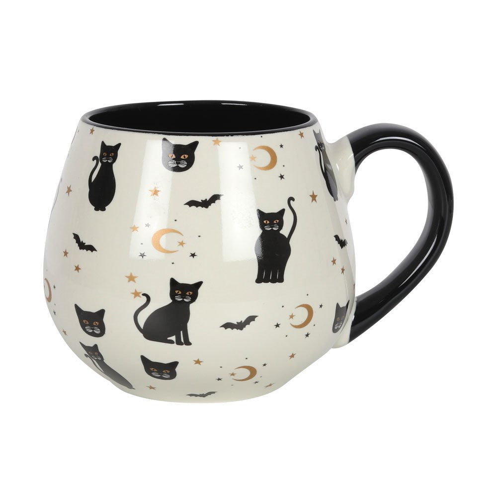 This bewitching mug features an enchanting mix of black cats, bats and mystical half moons.
