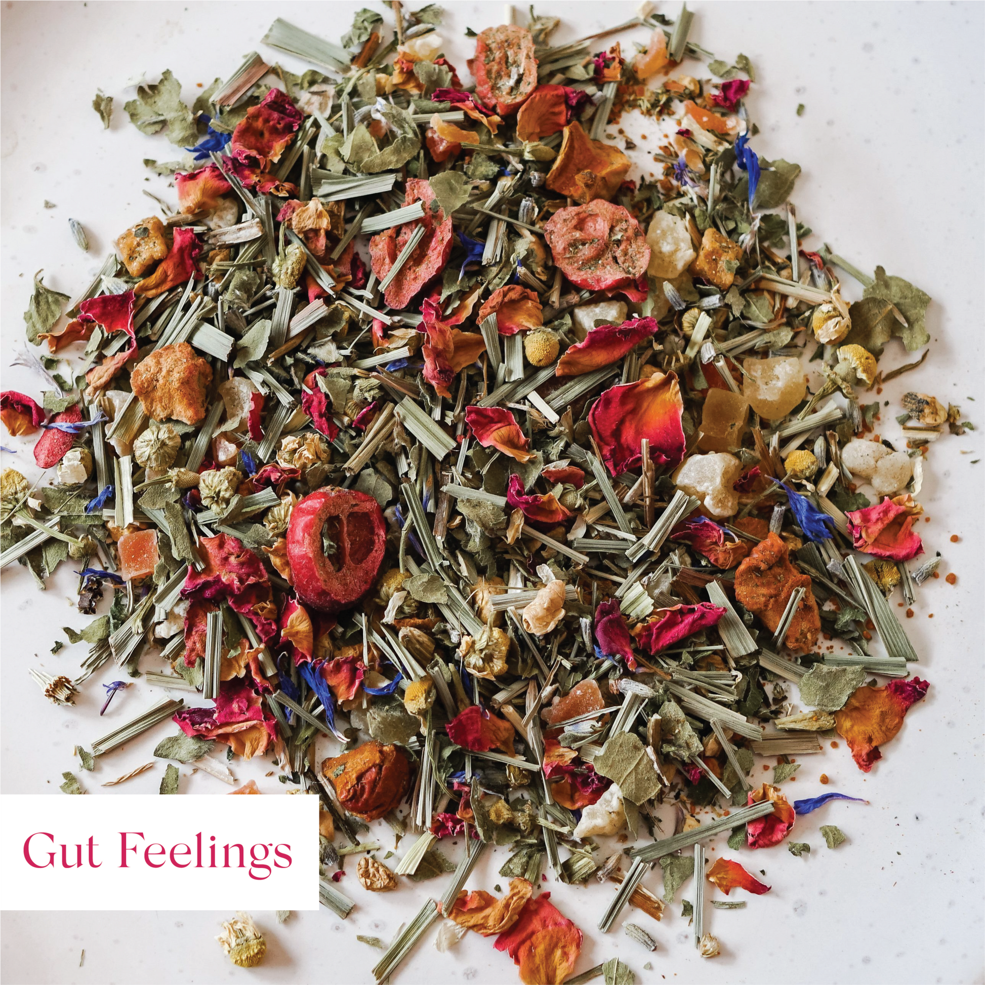 Gut Feelings is a delightful herbal blend crafted to nurture your digestion—and boost your mood—in the tastiest way possible. Cozy spices like turmeric and ginger mingle with zesty lemongrass, pineapple, and field horsetail to gently restore your inner balance.