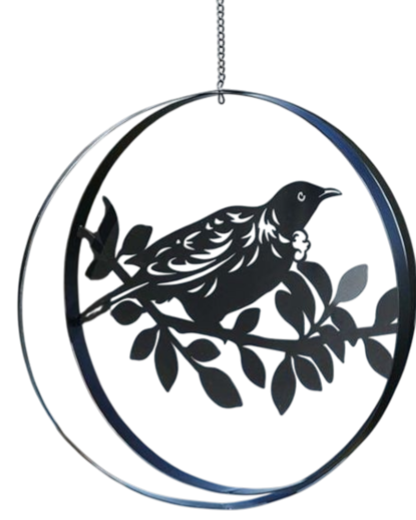 Elegant black metal rings create mesmerizing movement and visual interest in any space. This 32cm hanging fantail design captures the graceful motion of native birds, adding a touch of nature-inspired artistry to your garden, patio, or indoor décor. The durable metal construction withstands outdoor elements while the dynamic ring design catches light and breeze for continuous, hypnotic motion. Perfect as a gift or personal sanctuary accent.