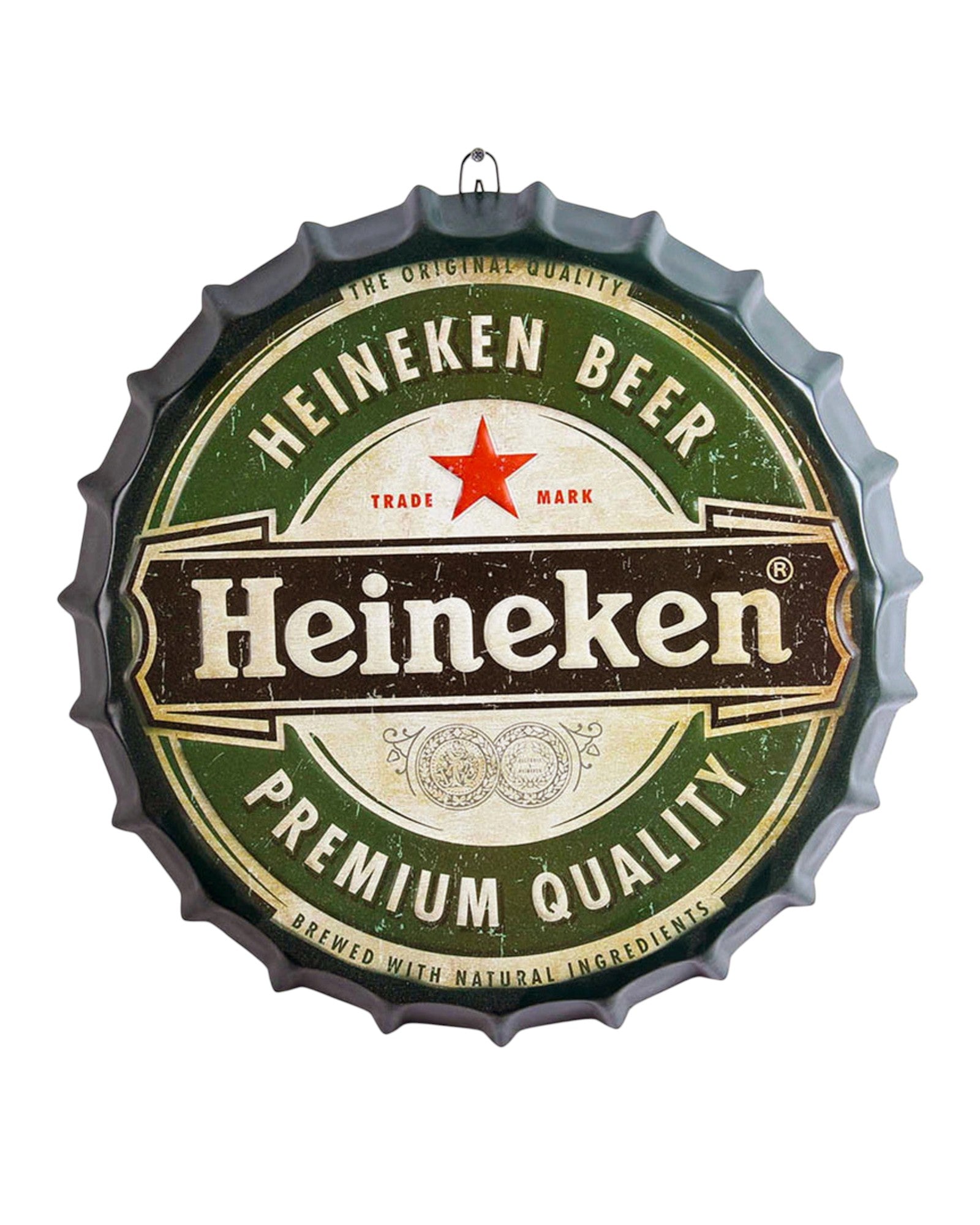 Measuring 3.8 x 35 x 35 cm, this metal Heineken Beer Bottle Top Sign brings a fun and quirky vibe to any room or bar area.