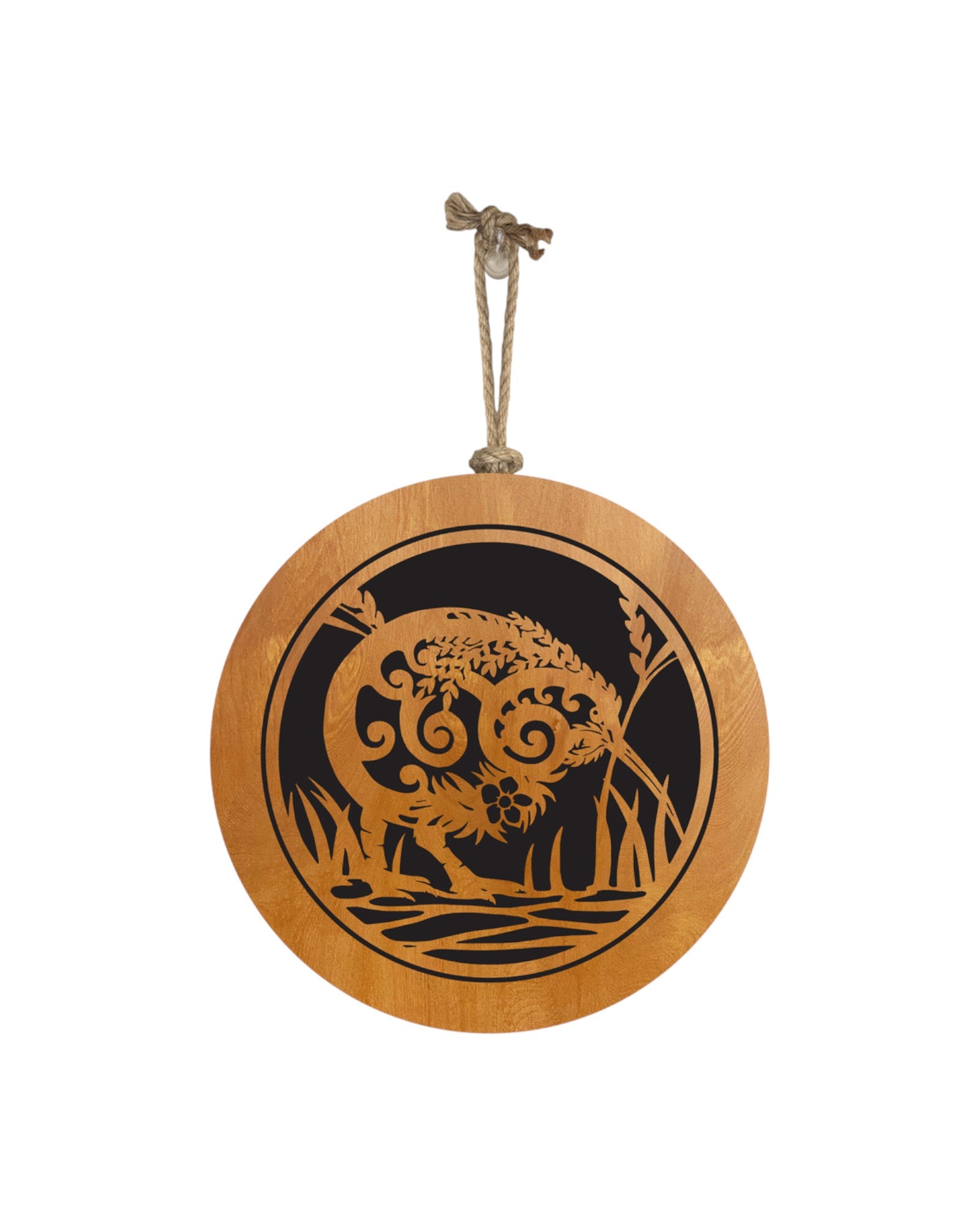 Sophie Blokker's Kiwi Birch Cut Out features a striking design mounted on a black backing board, measuring 30 x 30 x 8 cm, ready to hang and make a bold statement wherever displayed.