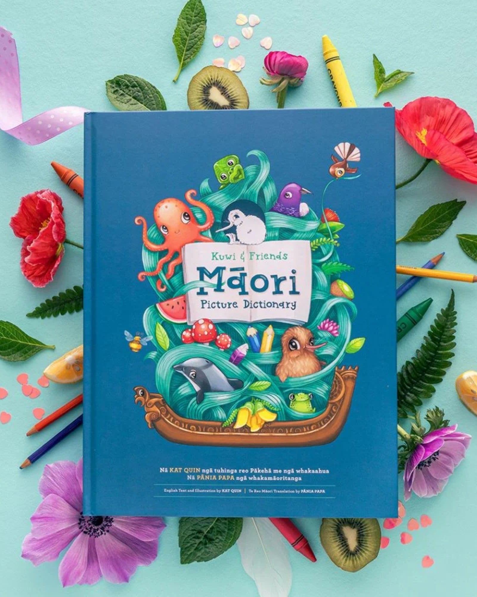 Vibrant full colour, with over 1000 te reo Māori words, translated into English. Embedded with gorgeous Kuwi the kiwi (and friends) illustrations.