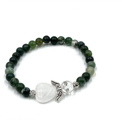Moss Agate Crystal Heart Guardian Angel Bracelet