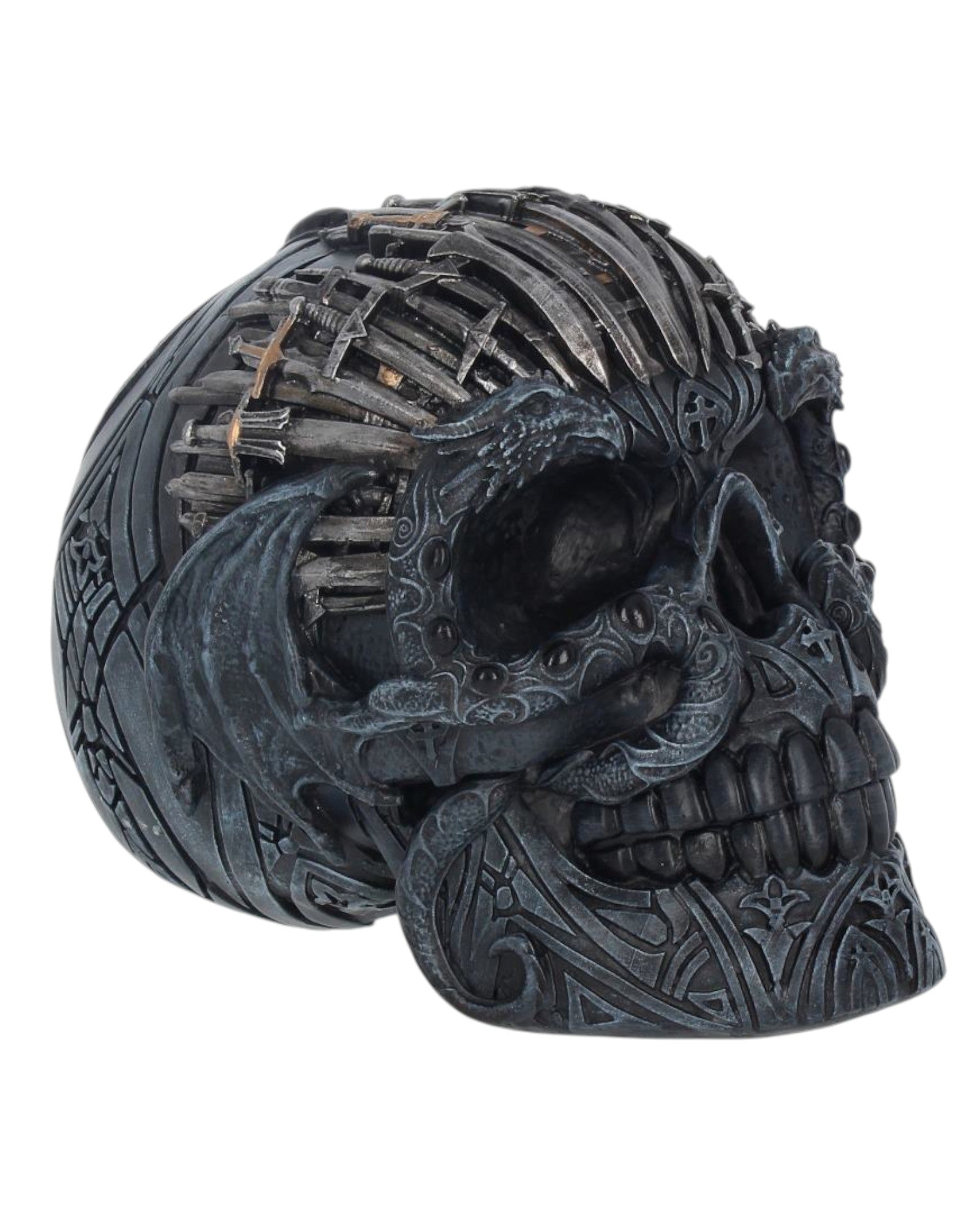 Make a powerful impression with the Nemesis Now Sword Skull. This imposing medieval sword features a fierce dragon skull, expertly hand-painted and crafted from high-quality polyresin. Weighing 0.88kg in its box, it’s a bold statement piece for any collection.