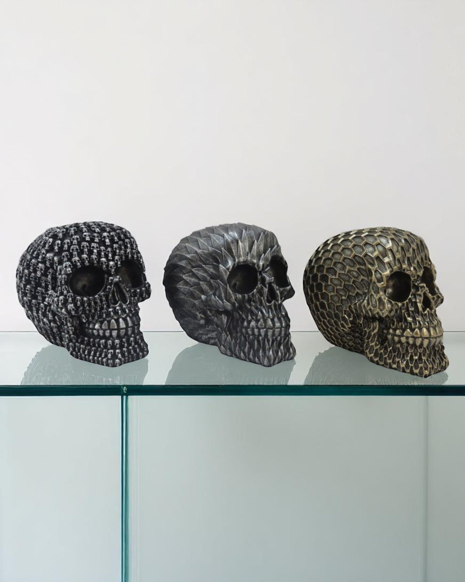 Discover three bold and unique skull designs, each with its own striking pattern. Perfect for those who dare to stand out.