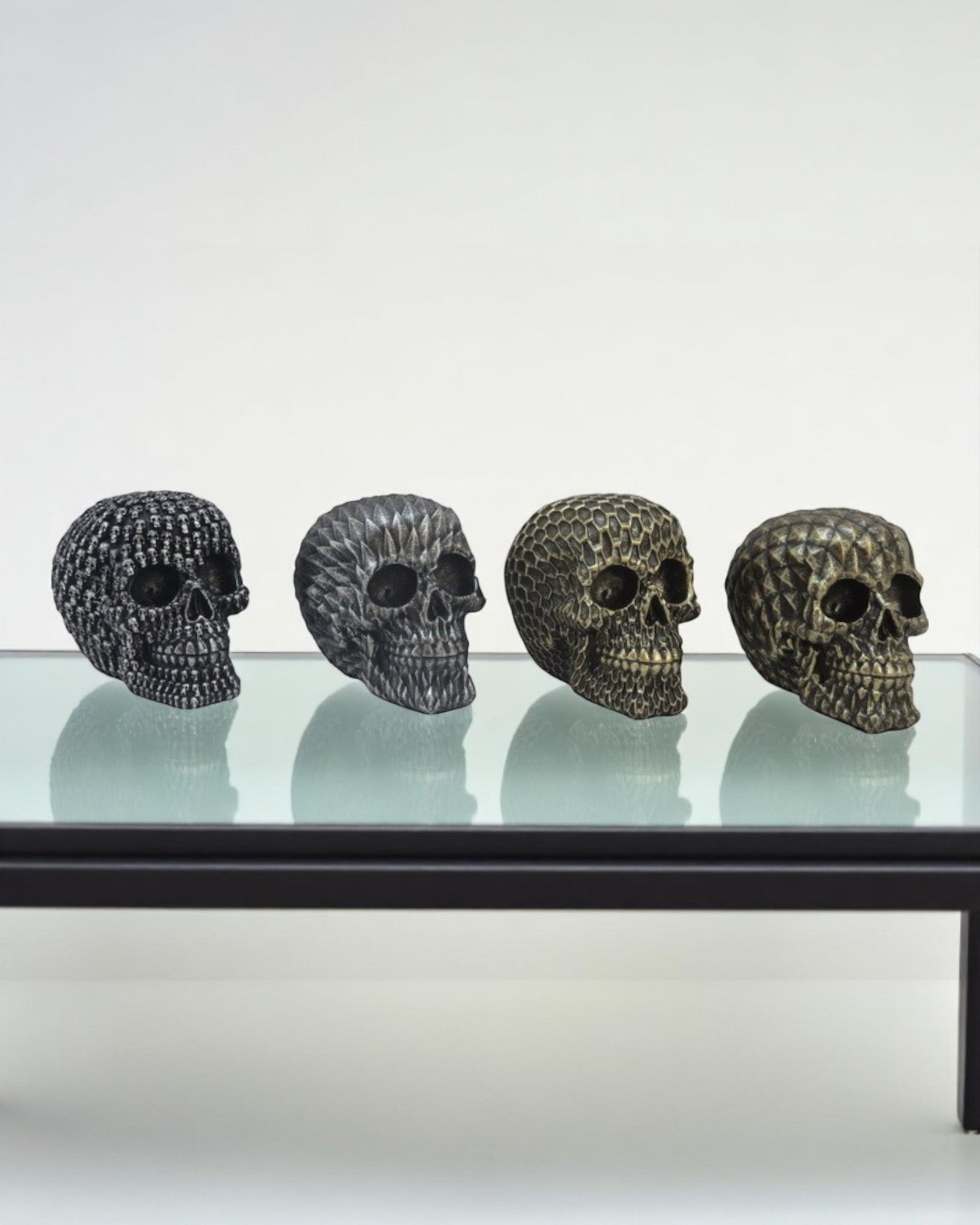 Discover Four bold and unique skull designs, each with its own striking pattern. Perfect for those who dare to stand out.