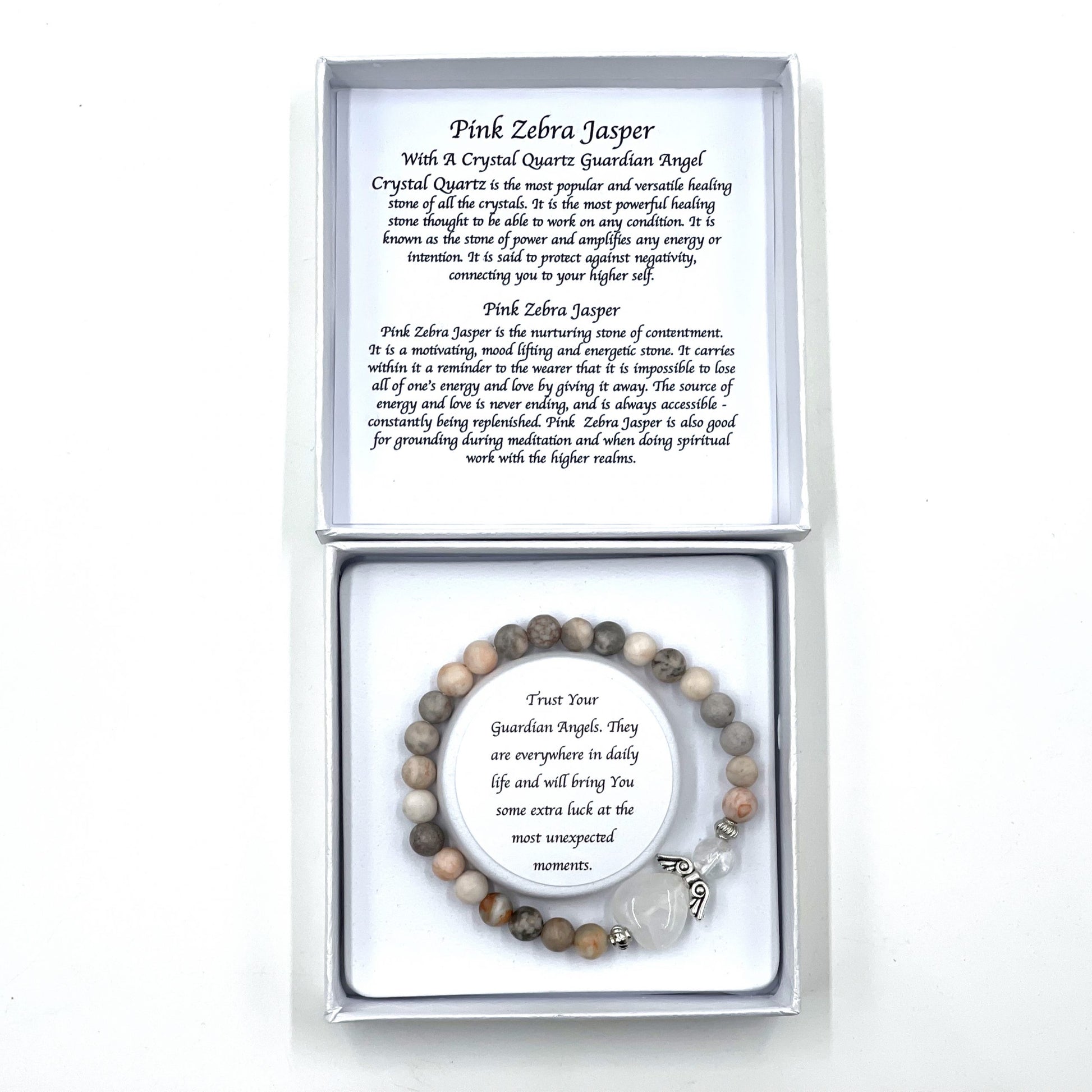 Pink Zebra Jasper Crystal Heart Guardian Angel Bracelet