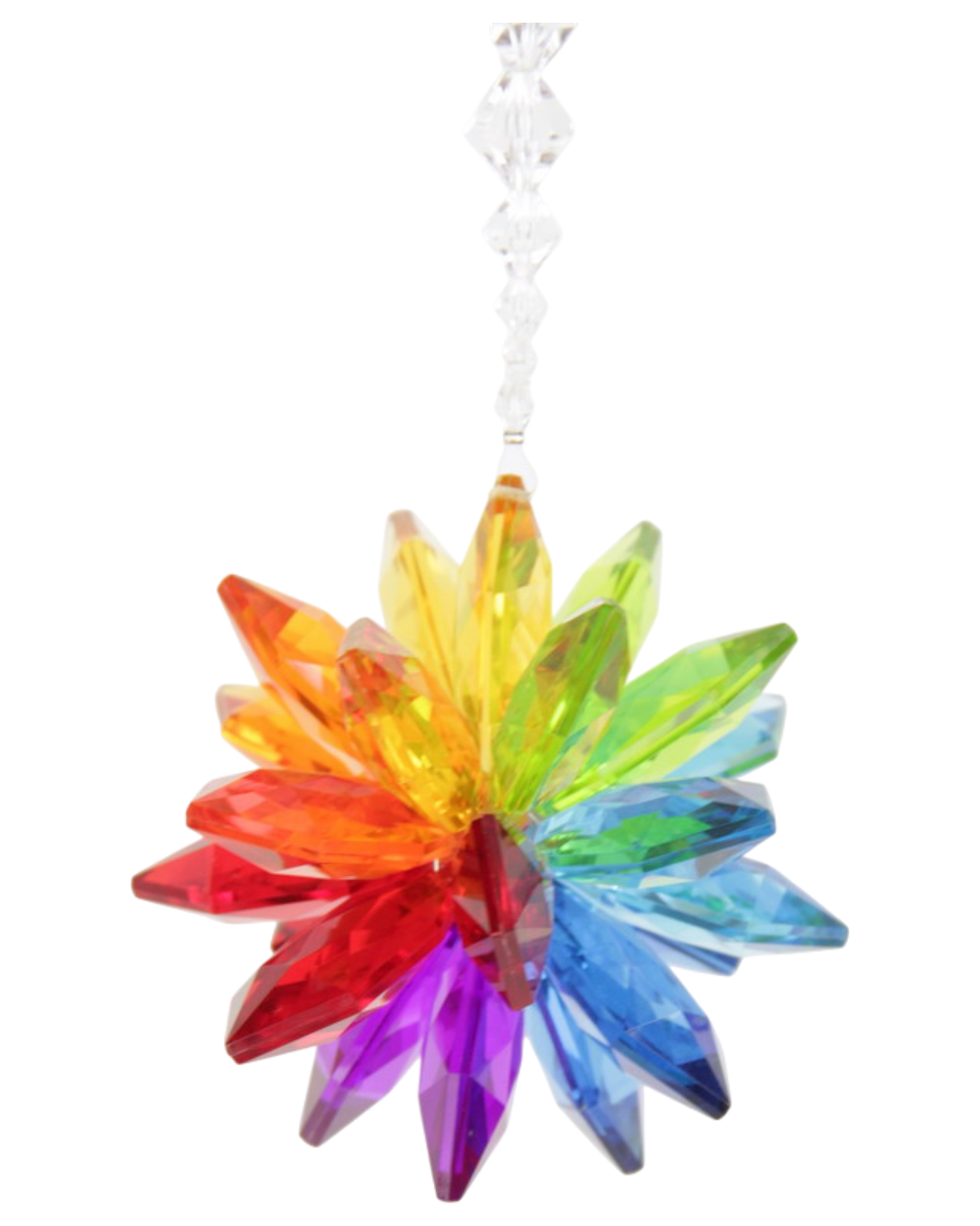 Burst into colour with this vibrant 7-inch Rainbow Krystal Starburst! Watch light dance through its prismatic facets, casting rainbow sparkles across your space. Perfect for adding a pop of joy and magical shimmer to any room or garden. A delightful gift for anyone who loves colour and a little extra sparkle in their life.