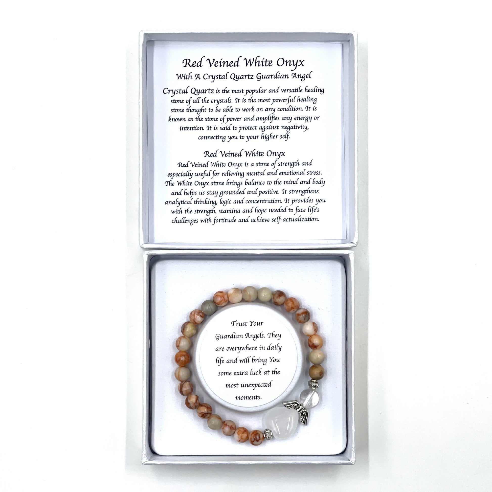Red Veined White Onyx Crystal Heart Guardian Angel Bracelet