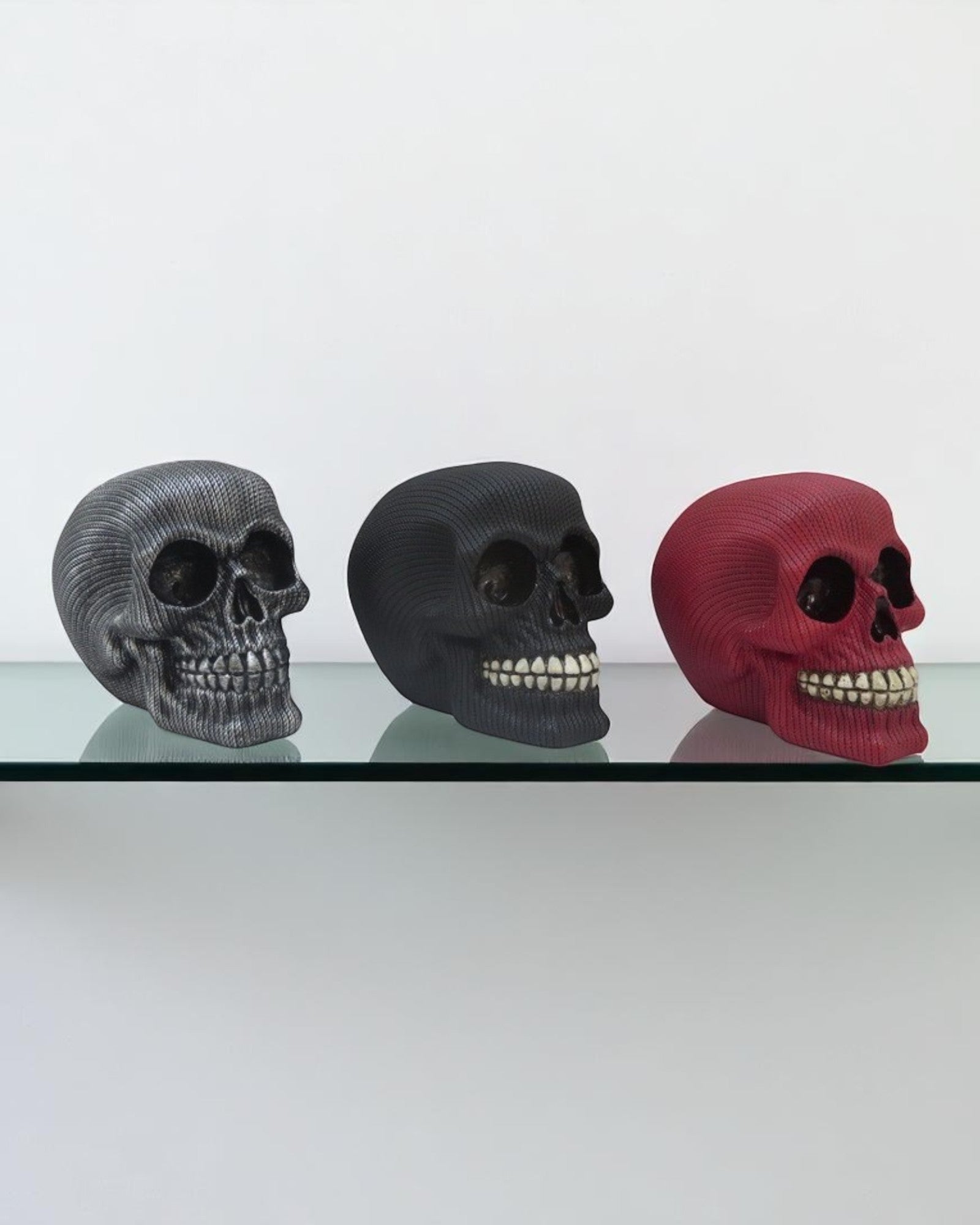 This 10cm skull comes in a bold mix of red, black, and silver, offering three striking color options to choose from.