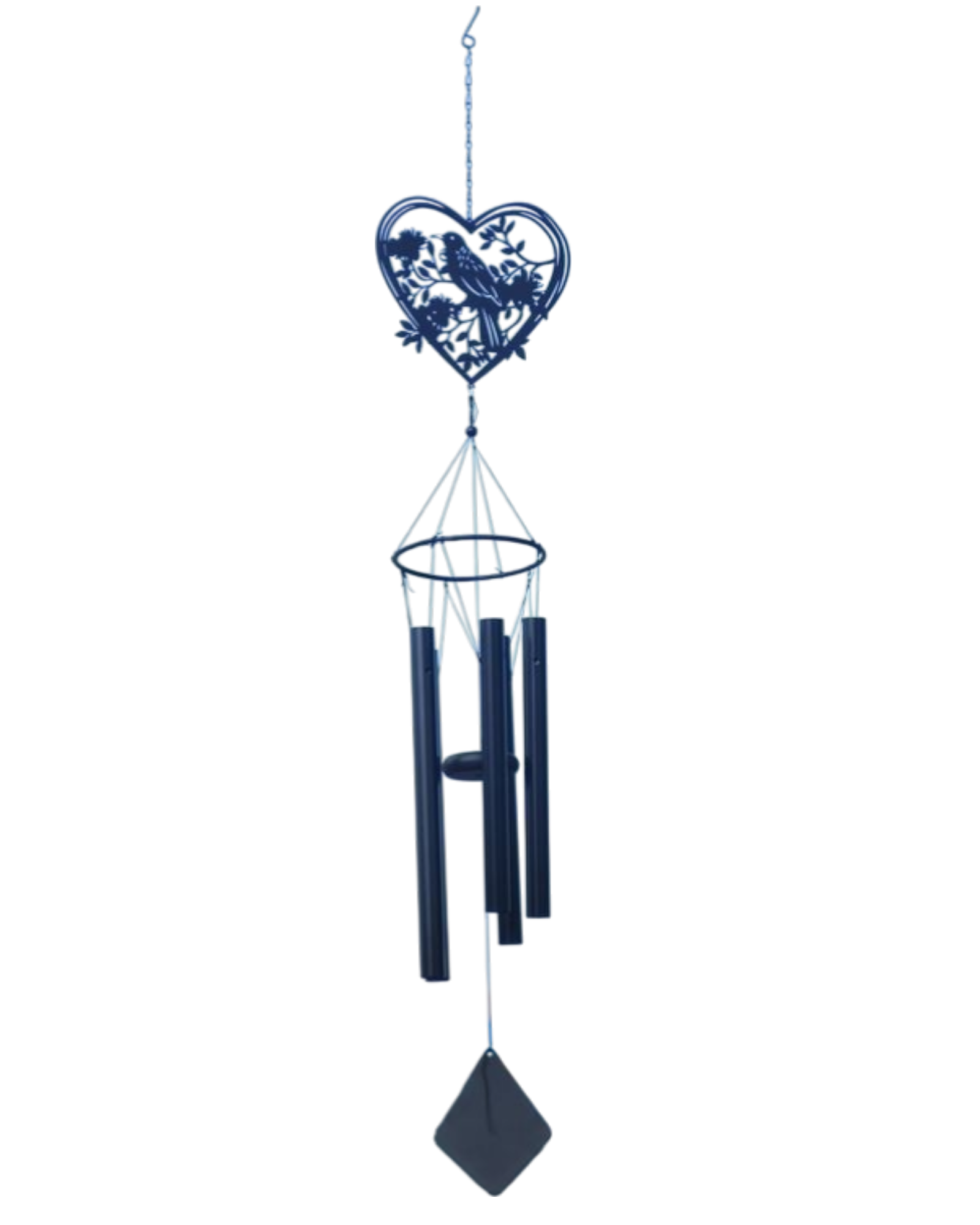 Celebrate the beauty of Aotearoa with this stunning 90cm Heart Wind Chime featuring the Tui. This elegant garden piece captures the spirit of New Zealand's native birds, bringing natural charm and melodic grace to your outdoor space. The heart-shaped design symbolizes love and connection, while the gentle chimes create a soothing soundscape. Perfect for gardens, patios, or as a meaningful gift that honours our native heritage. Handcrafted quality meets timeless design in this striking wind chime.