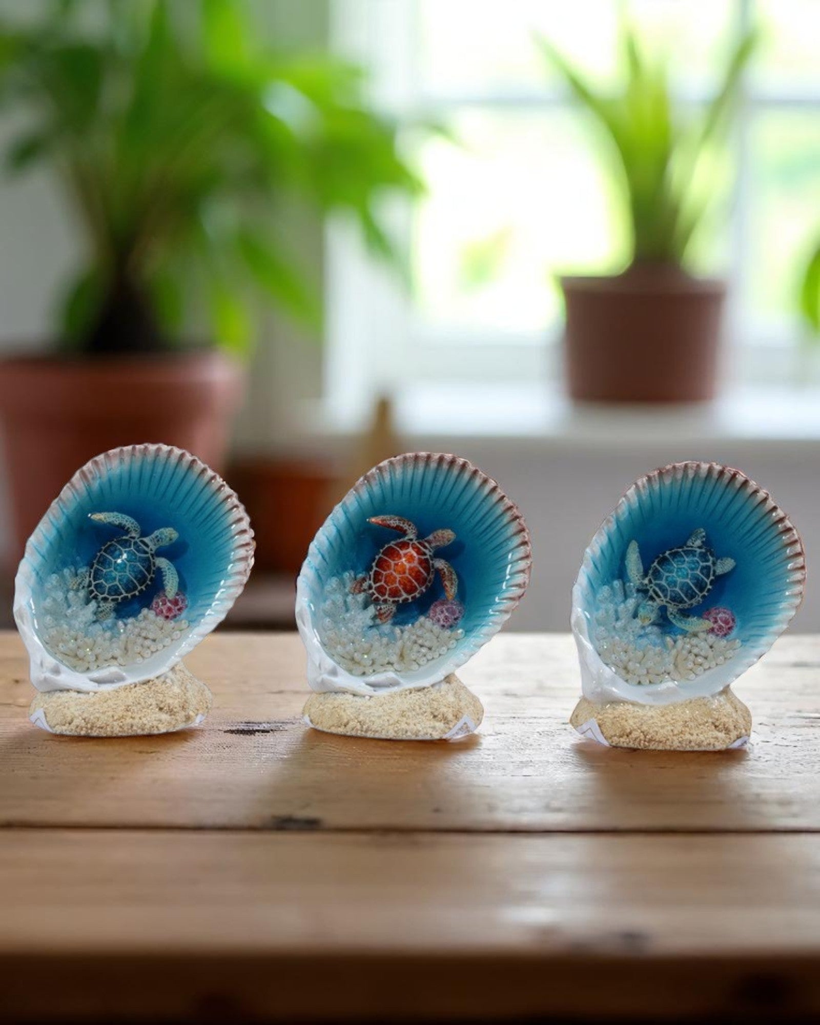 This 8cm turtle figurine, nestled in its shell and set on a base, comes in three unique designs. Its charming detail makes it a perfect collectible or gift that adds a touch of nature’s beauty to any space.