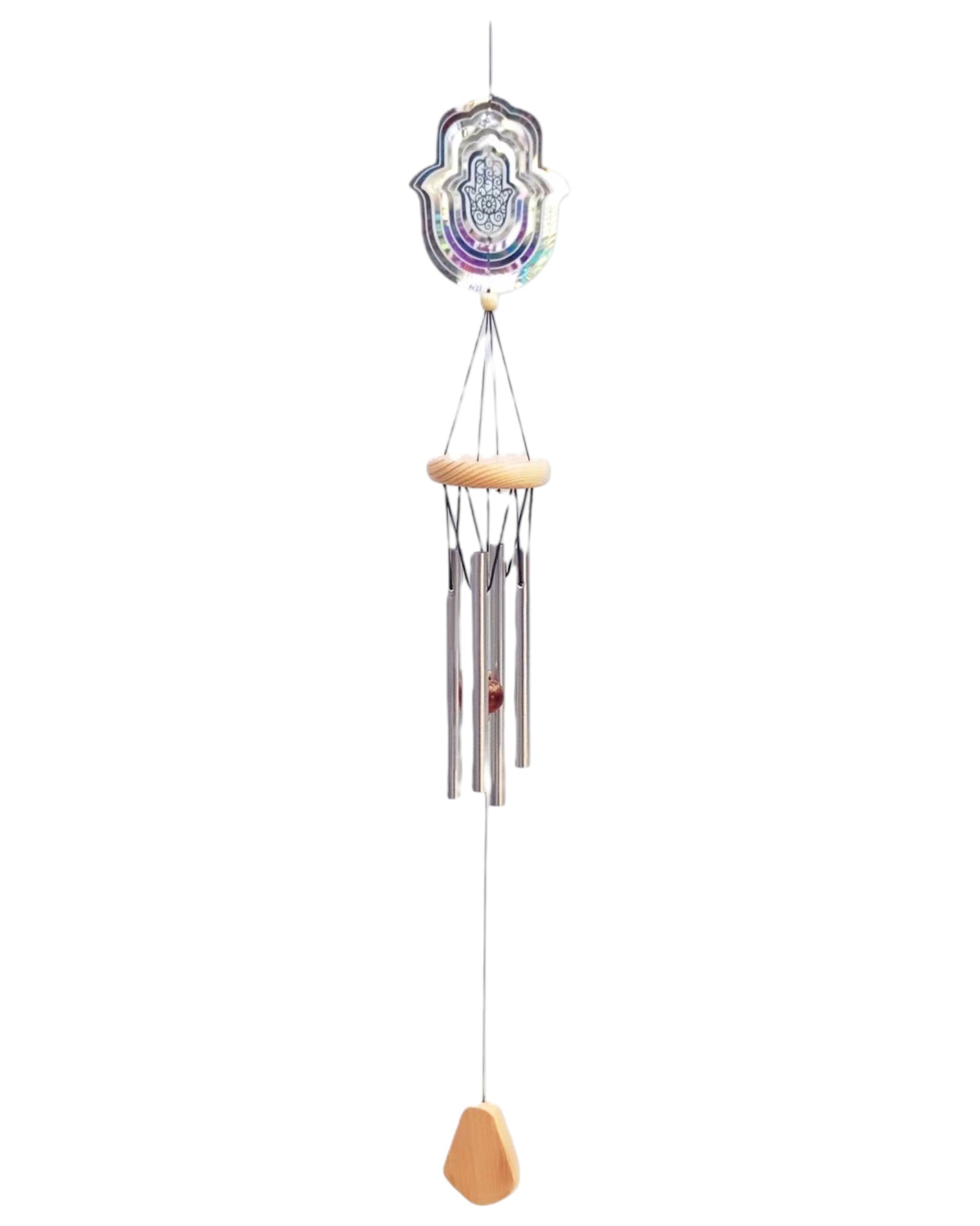 The Windspinner Windchime Hamsa Hand, standing 70 cm long, combines elegant design with calming music to enhance your outdoor space. Featuring the symbolic Hamsa Hand, this windspinner gently rotates with the breeze, while its delicate chimes produce soothing sounds that promote relaxation. Perfect for gardens, patios, or balconies, it adds a touch of spiritual protection and positive energy to your home. This windchime not only beautifies your surroundings but also fosters a peaceful and uplifting atmosphere, making it a thoughtful addition for both yourself and your loved ones.